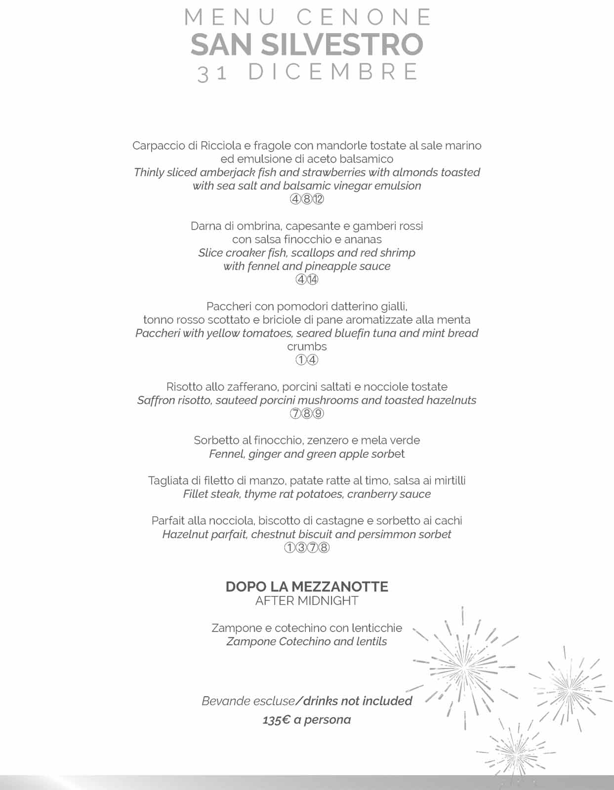 Il bellissimo menù di capodanno ha un costo di 90,00 € a persona.