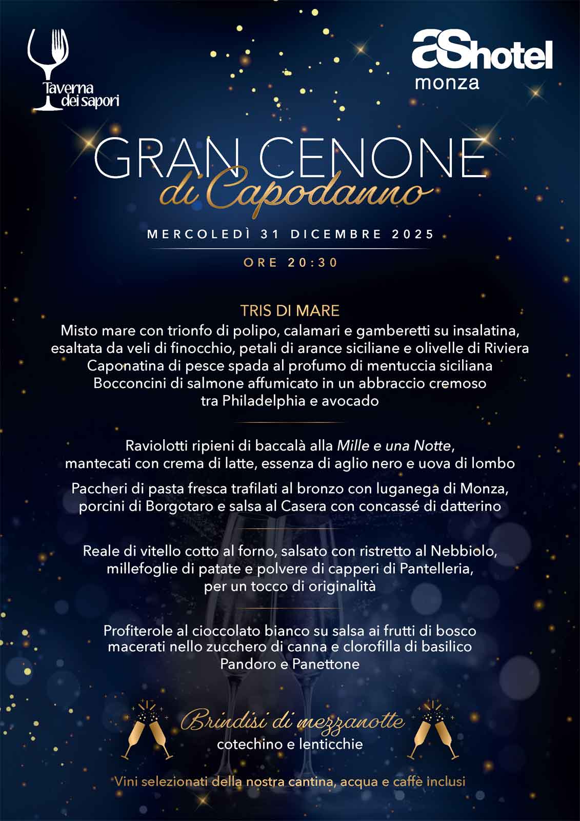 AS Hotel Monza è una piccola chicca nel cuore della Brianza in cui regalarsi un capodanno assolutamente suggestivo, in un contesto caldo ed accogliente. Scegliete di festeggiare l’arrivo del nuovo anno tra divertimento e risate!