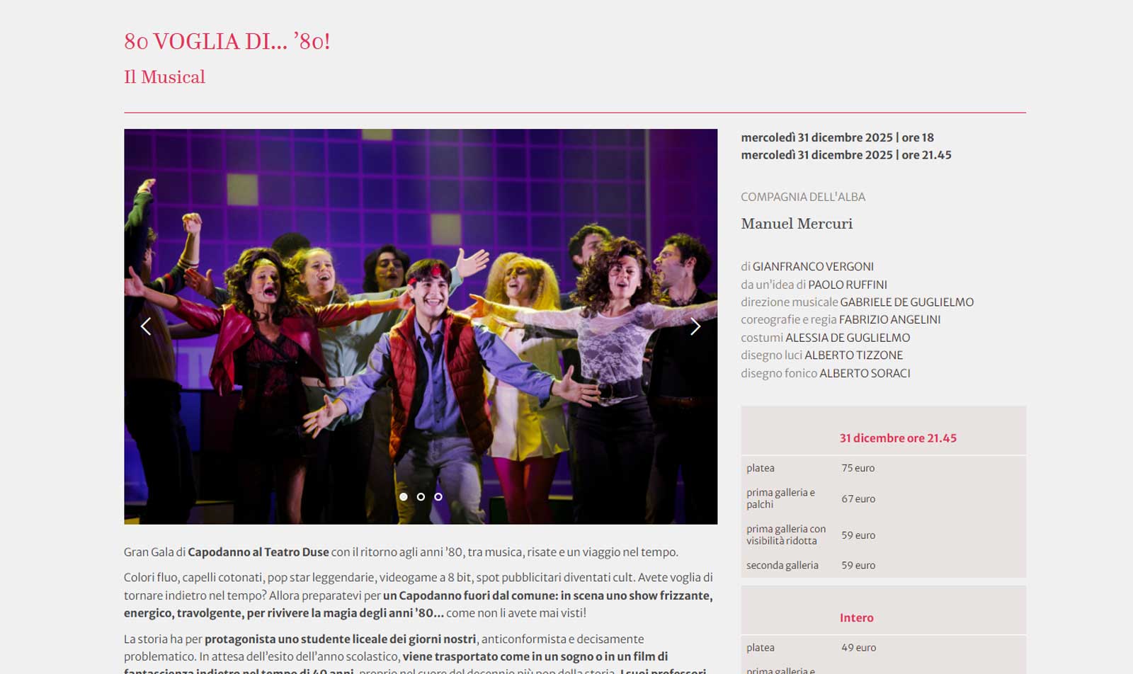 Evento di capodanno al Teatro Duse con 80 voglia di…’80 che porteranno in scena emozioni, risate e musica anni’80.